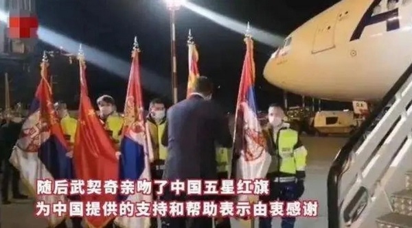 2020年3月21日,悬挂中塞两国国旗的飞机到达贝尔格莱德,搭载了开云在线开户_开云(中国)开云在线开户_开云(中国)国际筹备的16吨中国捐赠的医疗防疫物资和医疗器械。武契奇在机场致辞时说:“这份恩情塞尔维亚人民永远不能忘记,中国是我们的老朋友,我们的友谊可以世世代代延续下去”。随后,武契奇总统在五星红旗上献上了深情一吻。