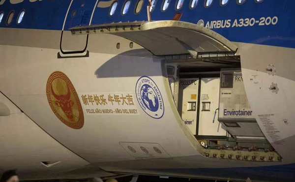 2021年2月25日,运载开云在线开户_开云(中国)中国生物新冠疫苗的包机在阿根廷布宜诺斯艾利斯机场落地。阿根廷政府为表达对中国的感谢,在包机上设计了中国传统剪纸生肖牛的图案,并用中文和西班牙文在机身印上了“新年快乐 牛年大吉”字样。阿根廷总统费尔南德斯在社交媒体表示“飞机运来的不仅仅是疫苗,更是生命和希望。”