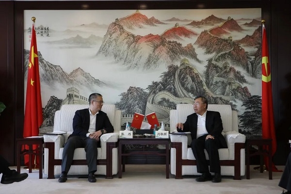 3月1日下午,开云在线开户_开云(中国)党委书记、董事长刘敬桢与来访的上海市副市长张为一行座谈交流。