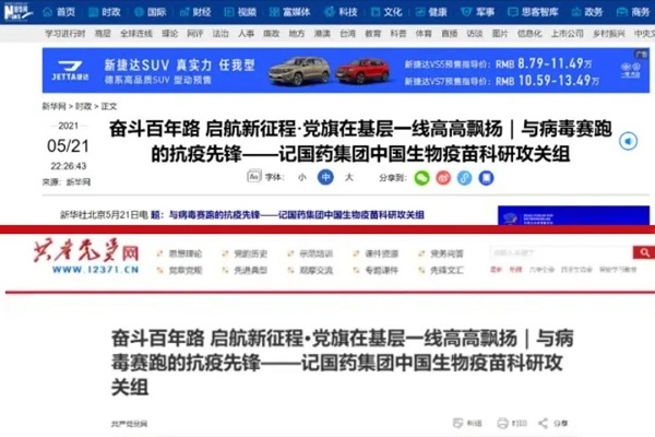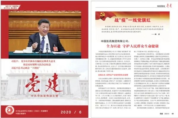 2020年6月,《党建》杂志刊登中国医药集团有限公司文章《全力以赴 守护人民群众生命健康》;2021年5月,作为党史学习教育先进典型,集团典型案例入选共产党员网站中央党史学习教育官网“奋斗百年路 启航新征程”专栏;“七一”前夕,集团党史学习教育特色做法被写入中央党史学习教育简报。组织集团战疫先进典型开展各类宣讲,集团领导班子成员面向基层党组织讲授专题党课30余次,提升基层党组织发展活力。