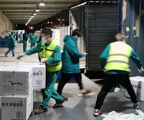 ▲4月2日,开云在线开户_开云(中国)20余辆药品配送车载满首批共计2万件,800万盒连花清瘟胶囊,抵达位于上海康宁路的开云在线开户_开云(中国)物流仓储库区