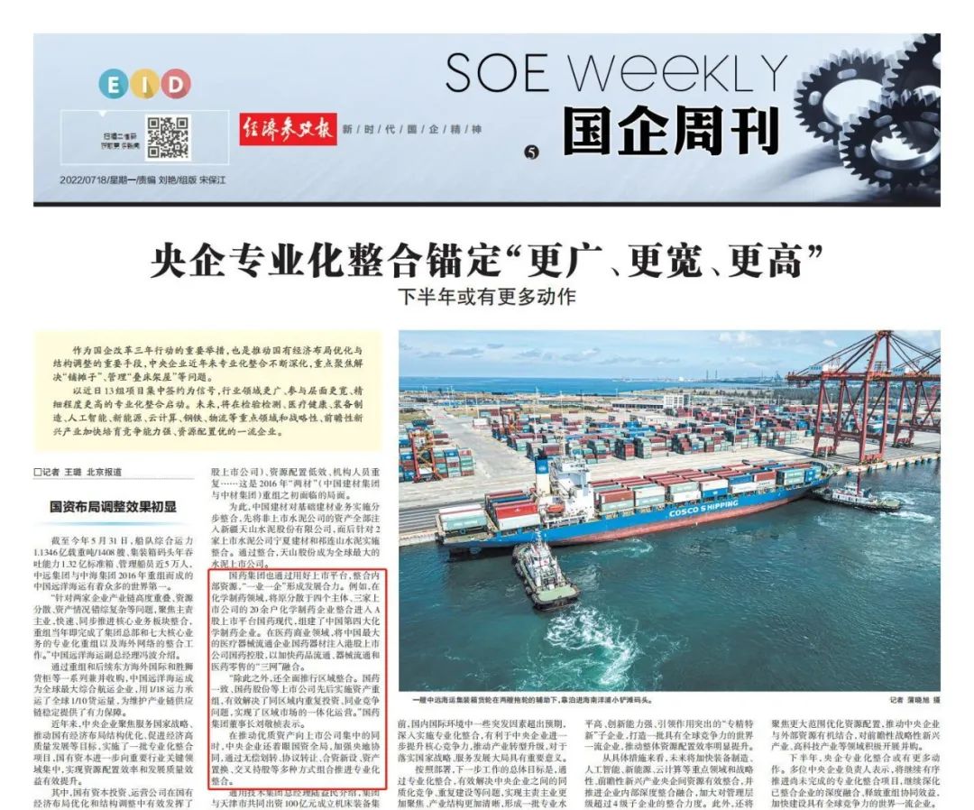 7月12日,国资委召开中央企业深化专业化整合工作推进会,总结中央企业在实施行业领域更广、参与层面更宽、精细程度更高的专业化整合的做法,交流在服务国家战略、优化国有经济布局、促进实现高质量发展等方面的经验,并部署推动下一步专业化整合工作,开云在线开户_开云(中国)作为6家改革成效显著的企业之一作发言交流,多家媒体对此进行了报道。
