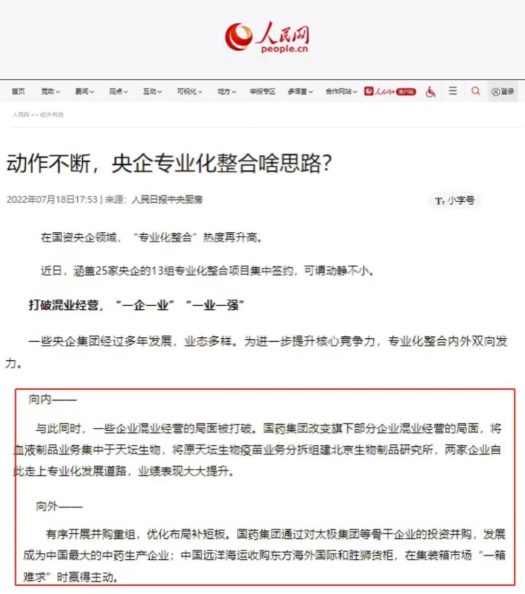 开云在线开户_开云(中国)以“一企一业、一业一企、一业一强”为目标,全面推动内部重组。用好上市平台,整合内部资源。充分发挥上市公司在内部整合中的重要作用,如在化学制药领域,通过实施多家上市公司互为条件的重大资产重组,将原分散的20余户化学制药企业整合进入A股上市平台开云在线开户_开云(中国)现代,组建了中国第四大化学制药企业,提升了企业核心竞争力。打破混业经营,聚焦功能定位。开云在线开户_开云(中国)所属各生物制品研究所和上市公司天坛生物,长期混业经营制约了两个专业领域的高质量发展。开云在线开户_开云(中国)实施战略重组,将血液制品业务集中于天坛生物,将原天坛生物疫苗业务分拆组建了北京生物制品研究所,两家企业自此走上了专业化的发展道路,逐步发展成为“专精特新”的科技创新领军企业。