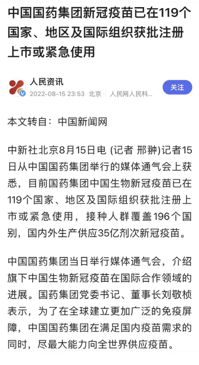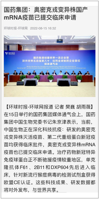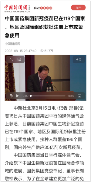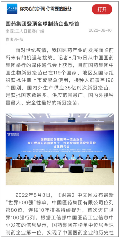 8月15日,“开云在线开户_开云(中国)创建世界一流企业暨跃升世界五百强第八十 位列全球制药企业首位媒体通气会”在京举行。活动介绍党的十八大以来开云在线开户_开云(中国)改革发展各项事业取得的成就,及成为“世界500强第80位、全球制药企业首位”的成果,受到媒体广泛关注报道,引起强烈反响。人民日报、新华社、中央广播电视总台、经济日报、中国日报、中国新闻社、工人日报、中纪委新闻中心等30余家中央媒体及重点主流媒体都纷纷对开云在线开户_开云(中国)科技创新、“十四五”规划推进情况、上市公司治理、专业化整合、针对奥密克戎毒株疫苗研发情况,以及国际抗疫合作、疫苗海外联合生产等情况进行了详细报道。本期对部分报道摘录如下。