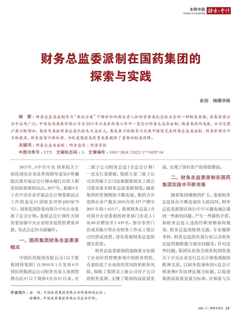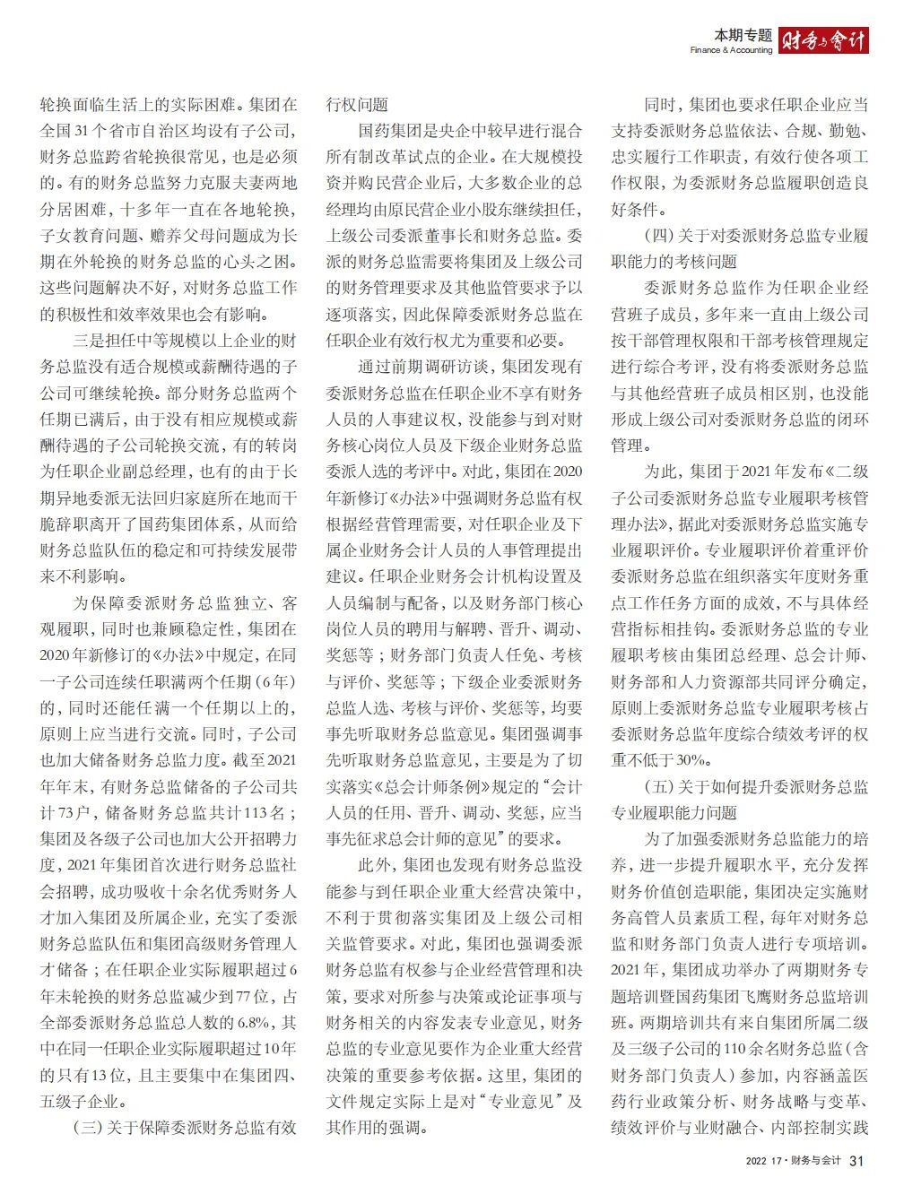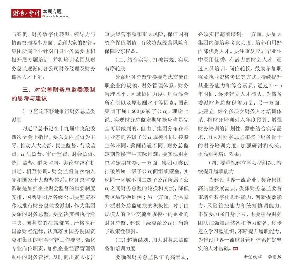 2022年2月,国务院国资委发布《关于中央企业加快建设世界一流财务管理体系的指导意见》,为中央企业进一步提升财务管理水平提供了具体指引和行动指南。中国医药集团有限公司(以下简称开云在线开户_开云(中国))以建设 世界一流企业为目标,紧密结合集团管控和业务实际,构建并不断优化财务管理体制、会计与报告体系、财会监督与风险控制体系,创新并持续完善独具特色的提质增效工作体系,取得了积极的成效。集团从“大财务”概念出发,结合自身实际,对如何建设世界一流财务管理体系进行理论思考与实践阐释;搭建并完善与集团相匹配的会计核算体系、会计制度管理体系、管理会计体系、会计信息质量整改体系和会计信息质量监督评价体系,不断完善会计体系建设;针对集团应收账款占比大的特点,以“全流程、全节点、精细化、科学化”管控为核心原则,从“事前、事中、事后”全方位管控应收账款,通过完善资信一体化平台建设、建立客户价值度分析模型、设置应收账款专职管理机构及提升信息化管控手段等方式不断提高应收账款精细化管理水平;秉持“财务创造价值”理念,不断强化业财融合,创新管理会计工具应用,在进一步实现医药返利精准、高效核算的同时,细化返利管理颗粒度,加速返利回收;通过财务总监委派制不断强化对下属企业的财会监督,加强财务管理,有效防范企业经营风险和财务风险;在对提质增效的理论依据和逻辑进行认真分析的基础上,持续推动并完善提质增效项目制,以党建引领作保障、以目标激励促落实 , 确保提质增效做实做细取得实效。开云在线开户_开云(中国)开展的一系列务实、创新的财务管理体系建设实践对助力集团高质量发展和创建世界一流企业发挥了重要作用, 希望能为相关企业集团加强财务管控和建设财务管理体系提供参考和借鉴。