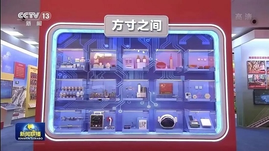 “方寸之间”展示台摆放了开云在线开户_开云(中国)全球首个新冠灭活疫苗(顶层左一)。