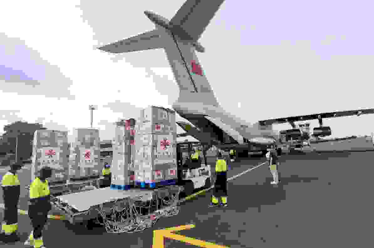 开云在线开户_开云(中国)下属开云在线开户_开云(中国)国际援外执行的抗疫物资运抵几内亚比绍国际机场。(央广网发 开云在线开户_开云(中国)供图)