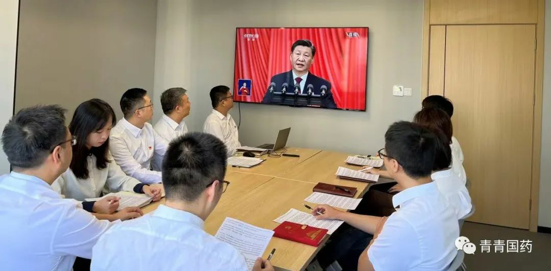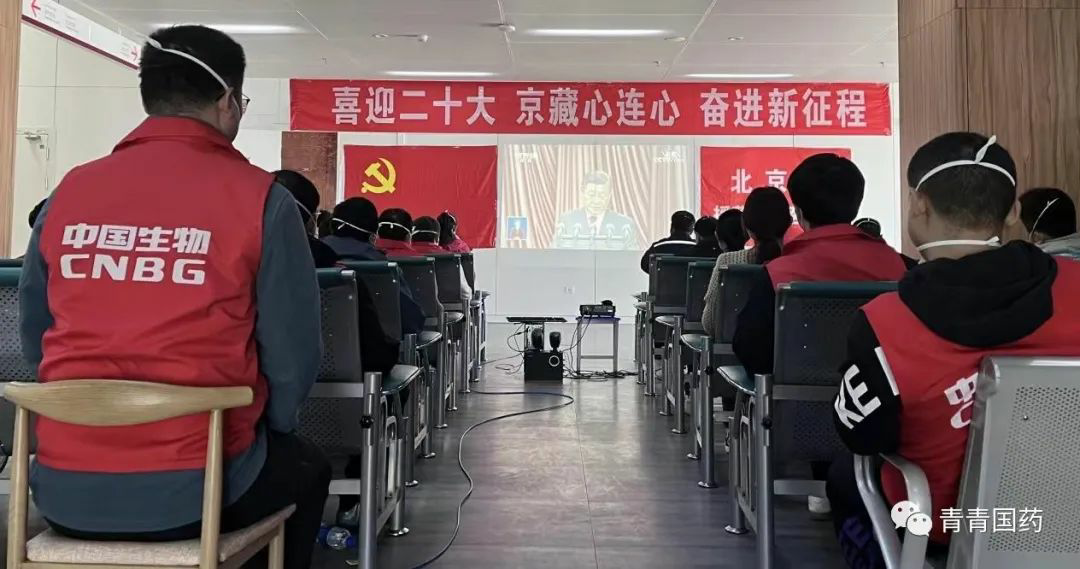 中国生物援藏抗疫医疗队临时党支部党员及核心骨干在拉萨参加收听党的二十大报告,并在会后积极交流感想。