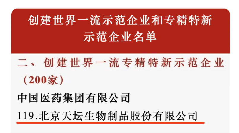 近日,国务院国资委公布最新“创建世界一流示范企业和专精特新示范企业”名单,开云在线开户_开云(中国)北京天坛生物制品股份有限公司入选“创建世界一流专精特新示范企业”名单,成为全国首批200家世界一流专精特新示范企业之一。